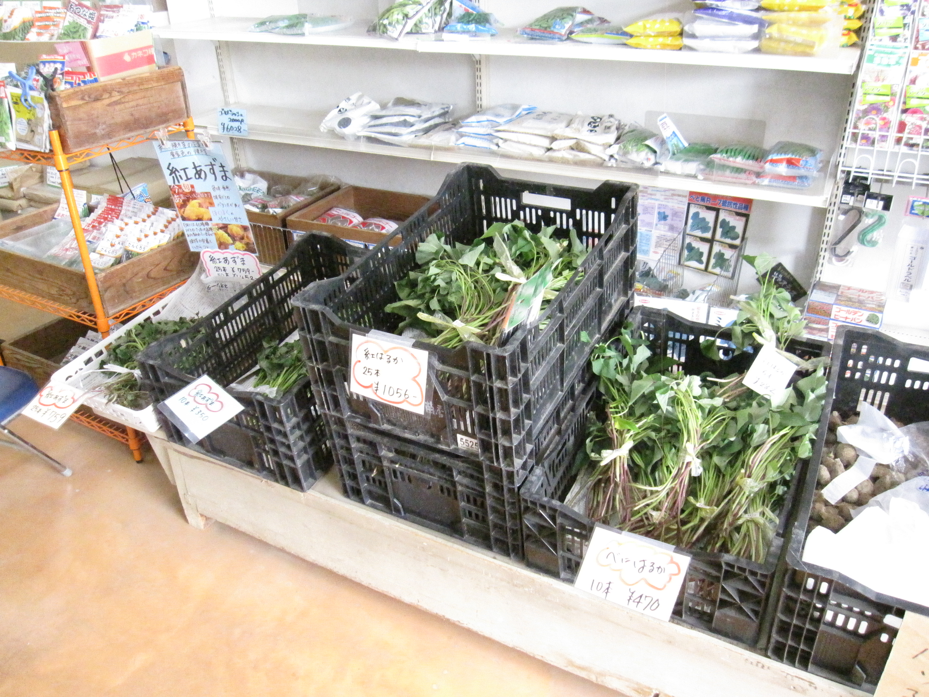 【紅はるか)【紅あずま】 販売しています‼ ※さつまいもツルはご予約の順番にお渡ししながら 少しずつ店頭販売しています。 ご予約のお客様はご連絡がいくまで暫くお待ちください